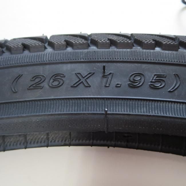 サイズは、26×1.95 (52-559 ISO表示サイズ)、タイヤ幅52ミリ、タイヤ内径559ミリとなります。